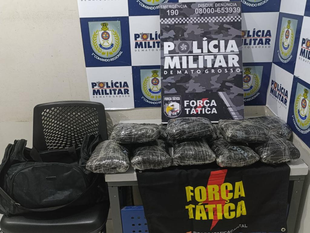 Policiais militares da Força Tática do 1º Comando Regional prenderam uma mulher, de 28 anos, por tráfico ilícito de drogas, na noite desta terça-feira (20.5), em Cuiabá. Com a suspeita, foram apreendidos 12 tabletes de skank (supermaconha), que seriam levados para o Estado de Minas Gerais.